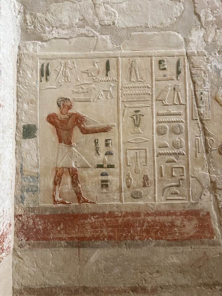 Then there was Saqqara. I joined colleagues from another institution on a day-long trip to Saqqara. These tombs are between 4500-4600 years old (that is not a typo) and have often been referred to as the Step Pyramids however, I learned that these were actually platforms where the dead was buried and the pyramid shape came from additional platforms being added on top of the previous one so they end up in a pyramid configuration but are not constructed as pyramids.